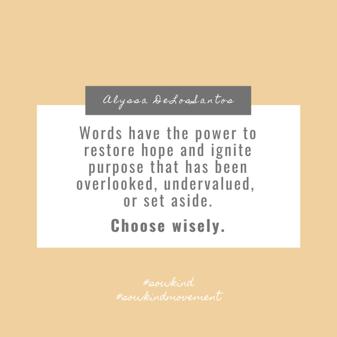 #sowkind to the neighbors on your street, the people at your work, and the strangers you encounter. When kindness returns to you, it seems to be right on time to meet a real time need. If that is true for you, you can be confident it is true for the people who intersect with your kindness.