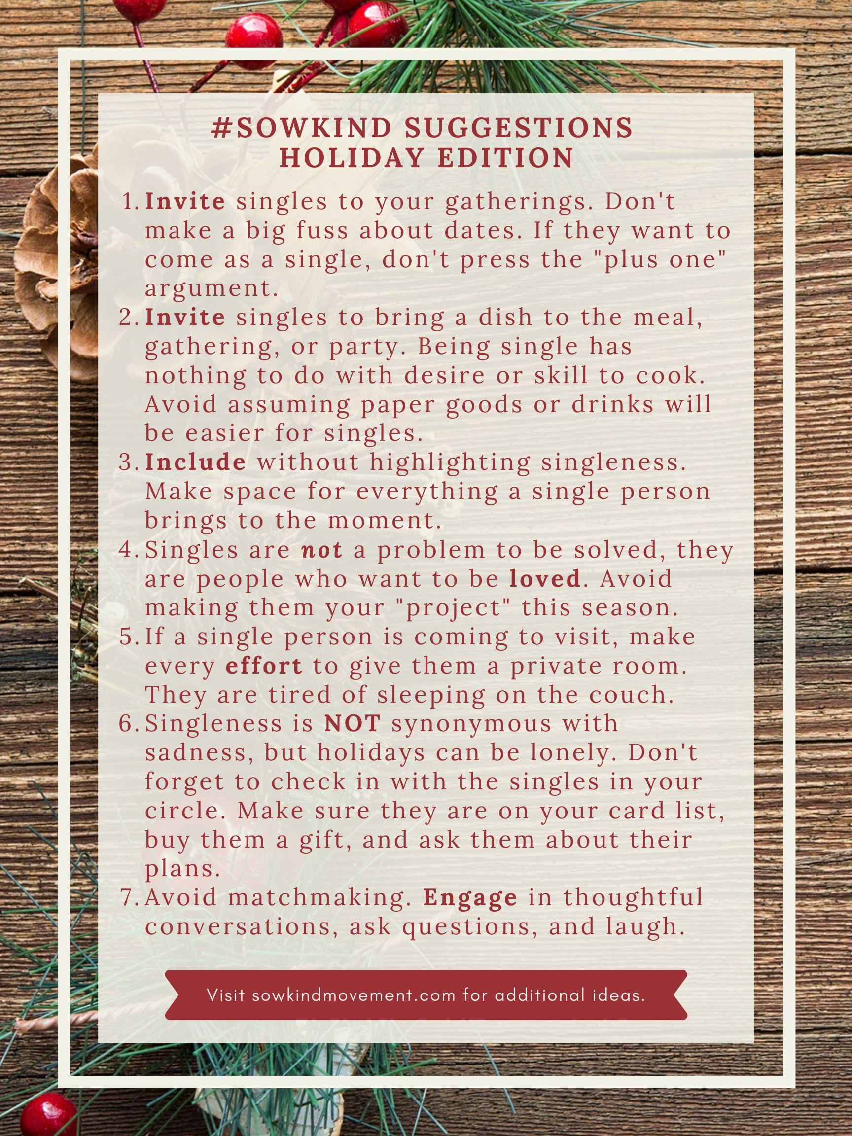 Singleness. It presents in many forms. Singles have a story. They desire to be honored, not ignored. If you are not in a single season, please tune your heart to the needs of those around you. Here are a few ideas to consider as you gather in the coming days and weeks. 📝