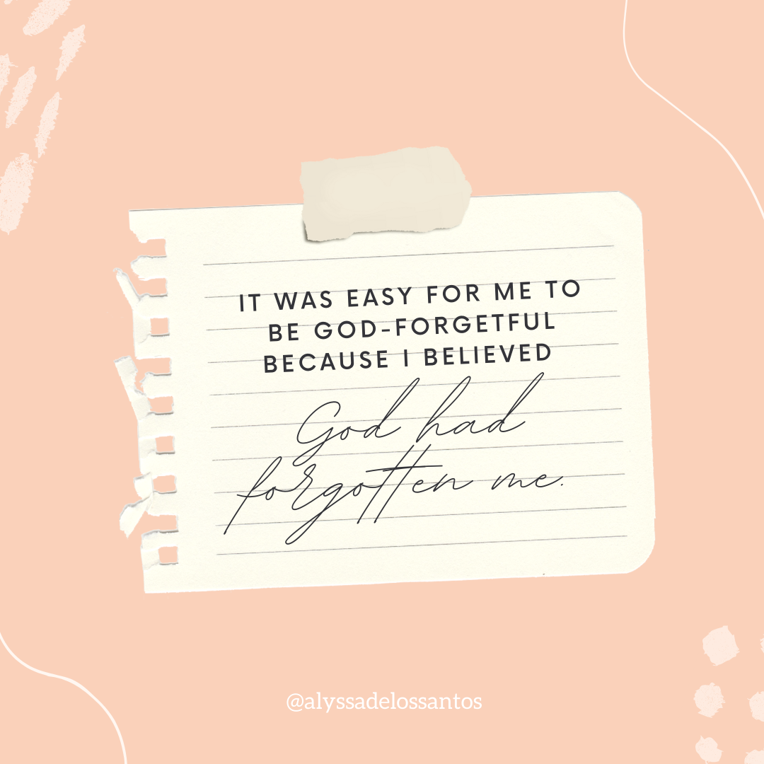 The trauma in my life was real, and it had an impact on my outlook. As I began healing, I realized how much my striving to earn approval stemmed from unbelief. It was easy for me to be God-forgetful because I believed God had forgotten me. In my unbelief, I became my biggest ally. I reasoned things with myself, and I forgot to talk to God.
